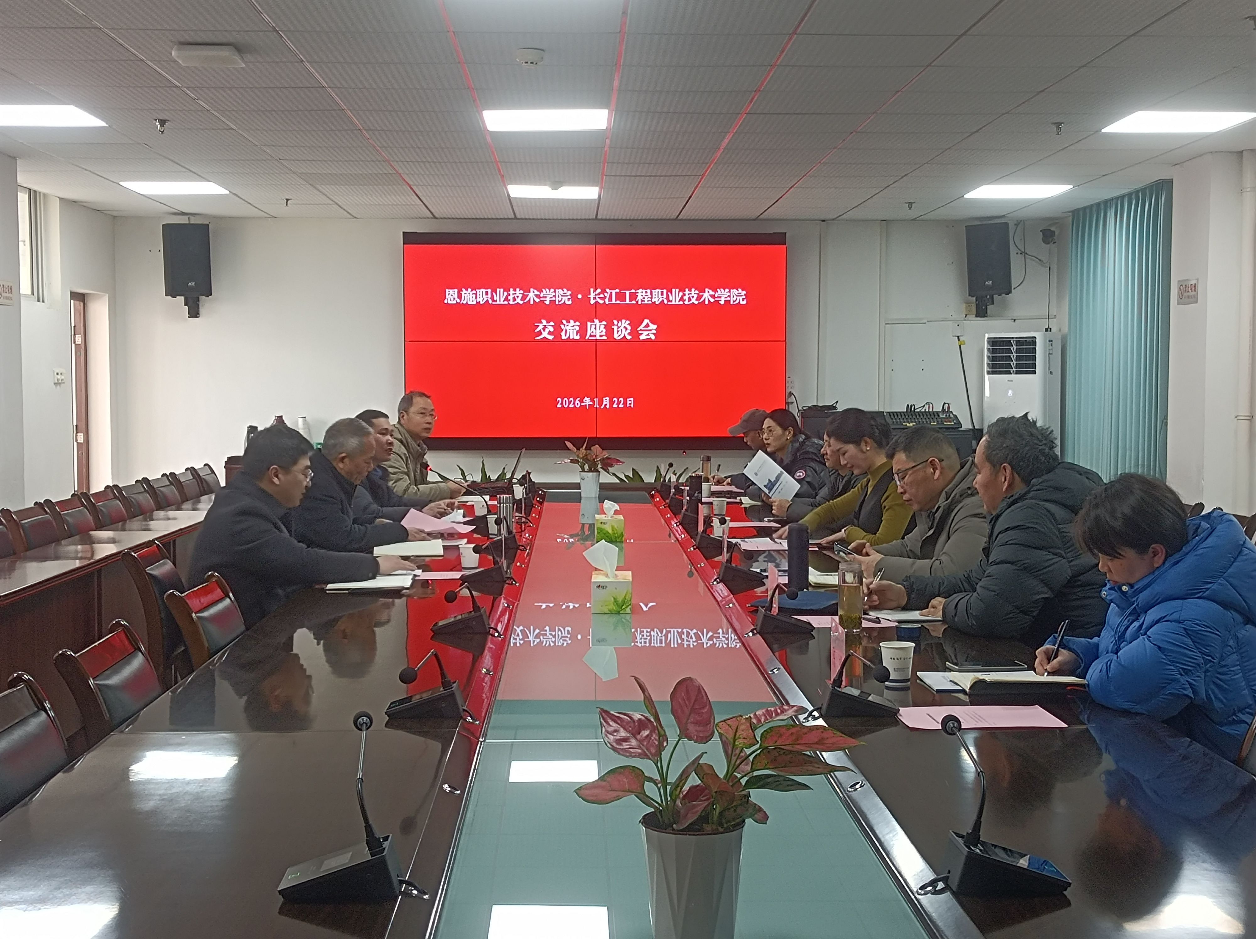 1月22日上午,恩施职业技术学院党委委员、宣传部部长胡平一行7人来校调研交流。学校党委委员、副校长刘文胜接待了胡平一行。